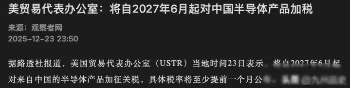这件事提及来挺有料想,好意思国方面提议要对中国半导体加征关税,但税率获胜时辰定在2027年6月,况且还有一个细节,具体征收些许得提前30天才会公布,这看起来并不像是真要脱手,更像是把刀举起来却迟迟不落下去,他们之前2018年就曾征收过50%的关税,此次再加多一层,策划不是那些开始进的芯片,而是硅片、化学品这类旧式零件,是以本色打击效劳其实有限。